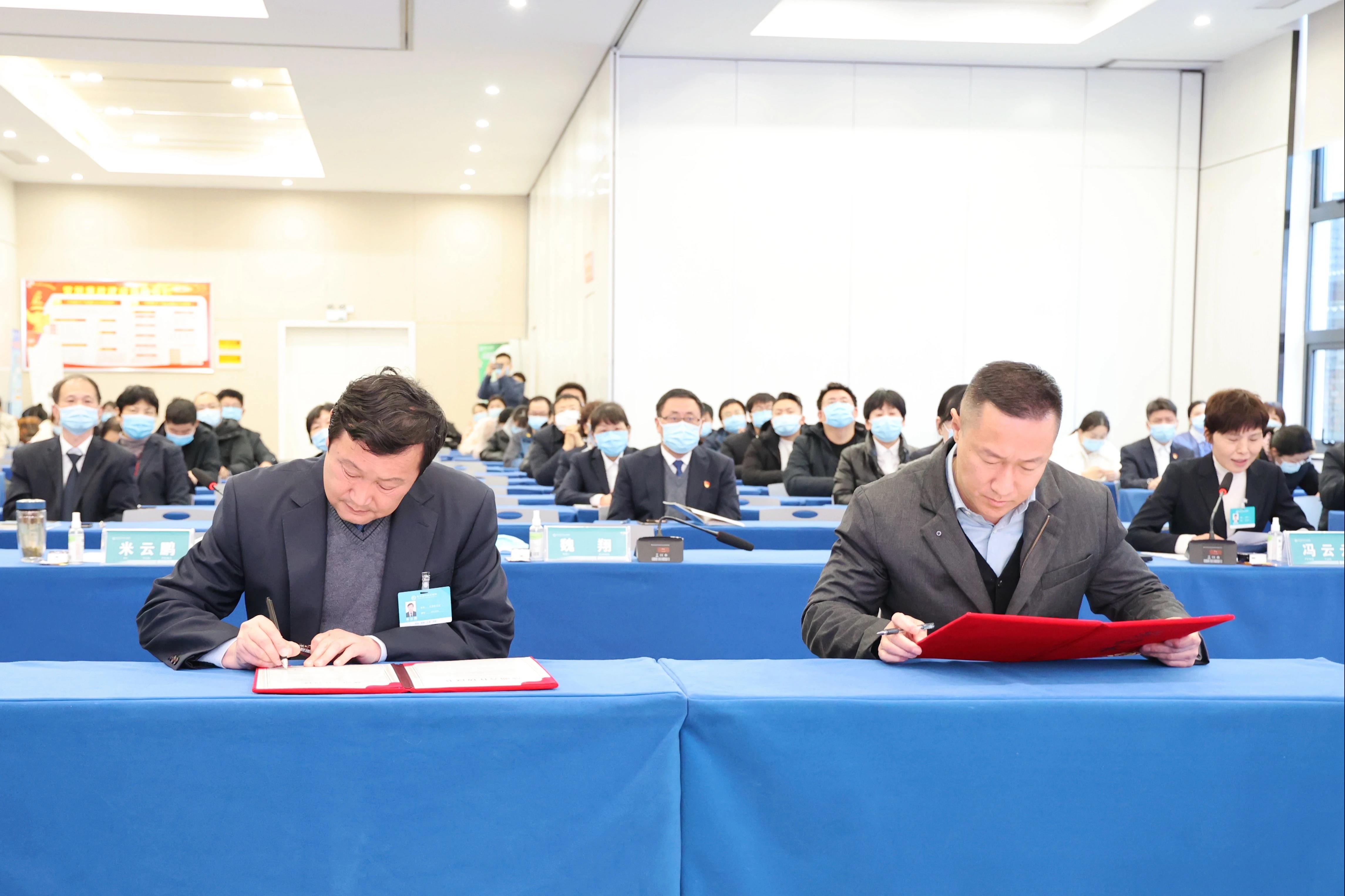 醫(yī)院黨委副書記米云鵬與河南省胸科醫(yī)院紀委書記魏翔共同簽下了全國心血管疾病管理能力評估與提升工程國家心血管疾病臨床醫(yī)學(xué)研究中心與駐馬店市中心醫(yī)院戰(zhàn)略合作協(xié)議書。