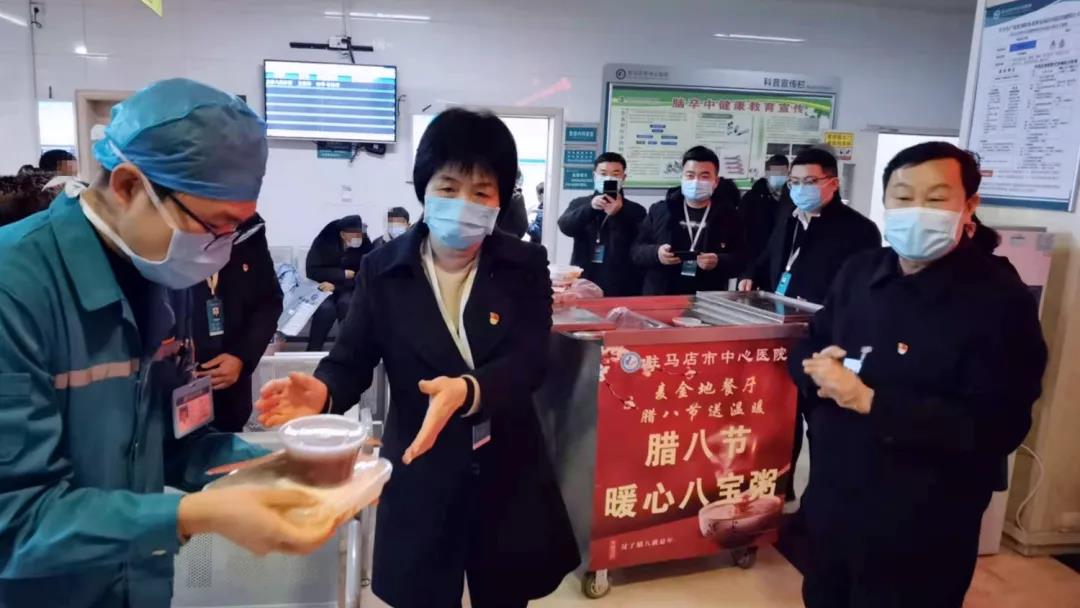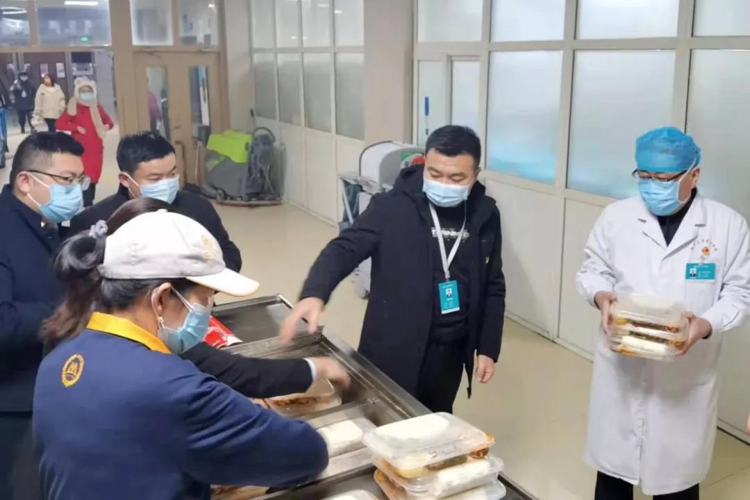 1月10日,正值傳統(tǒng)節(jié)日臘八節(jié),市中心醫(yī)院向堅(jiān)守在防疫一線的值班人員送上了熱氣騰騰的臘八粥。