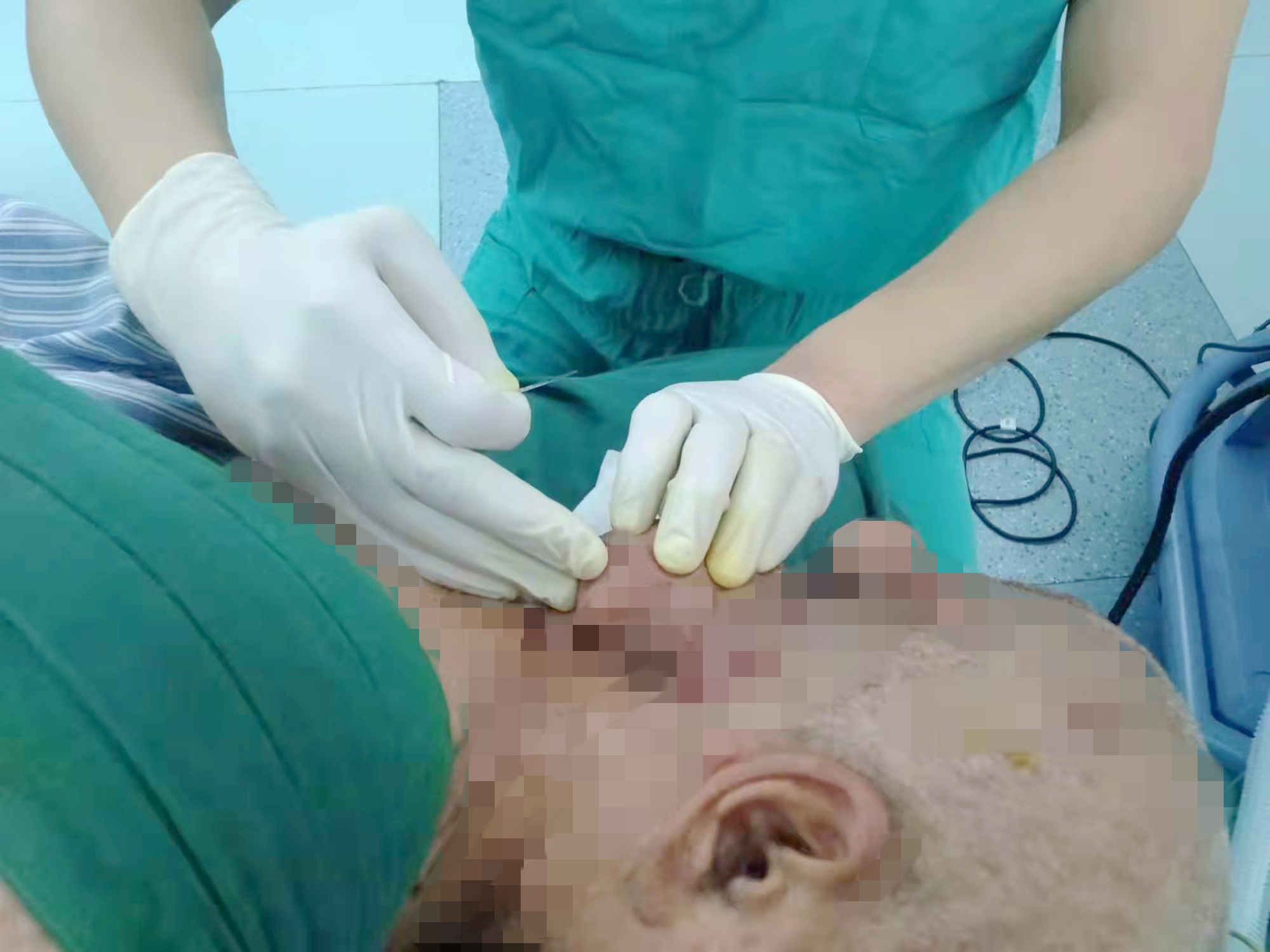 由于頭部血供豐富,手術腫瘤切除將面臨止血困難,腫瘤切除后切口皮膚張力高,縫合困難,需要轉移皮瓣,這些都對醫(yī)生的技術和膽量提出了挑戰(zhàn)。術中,醫(yī)生沿著瘤體“抽絲剝繭”,梭形切除腫瘤,憑借多年經驗和術前對供血血管的研究,神經外二科團隊精準止血、精密縫合,最終出血量遠少于預期。伴隨了王先生20多年的枕頸部多發(fā)腫物被完整切除,神經外二科醫(yī)療團隊又繼續(xù)向四周游離修整皮瓣,松解切口皮下組織,進行轉移皮瓣。