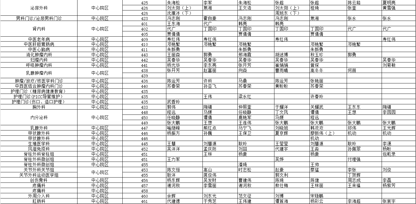 駐馬店市中心醫(yī)院門診坐診信息一覽表(含婦兒院區(qū))
