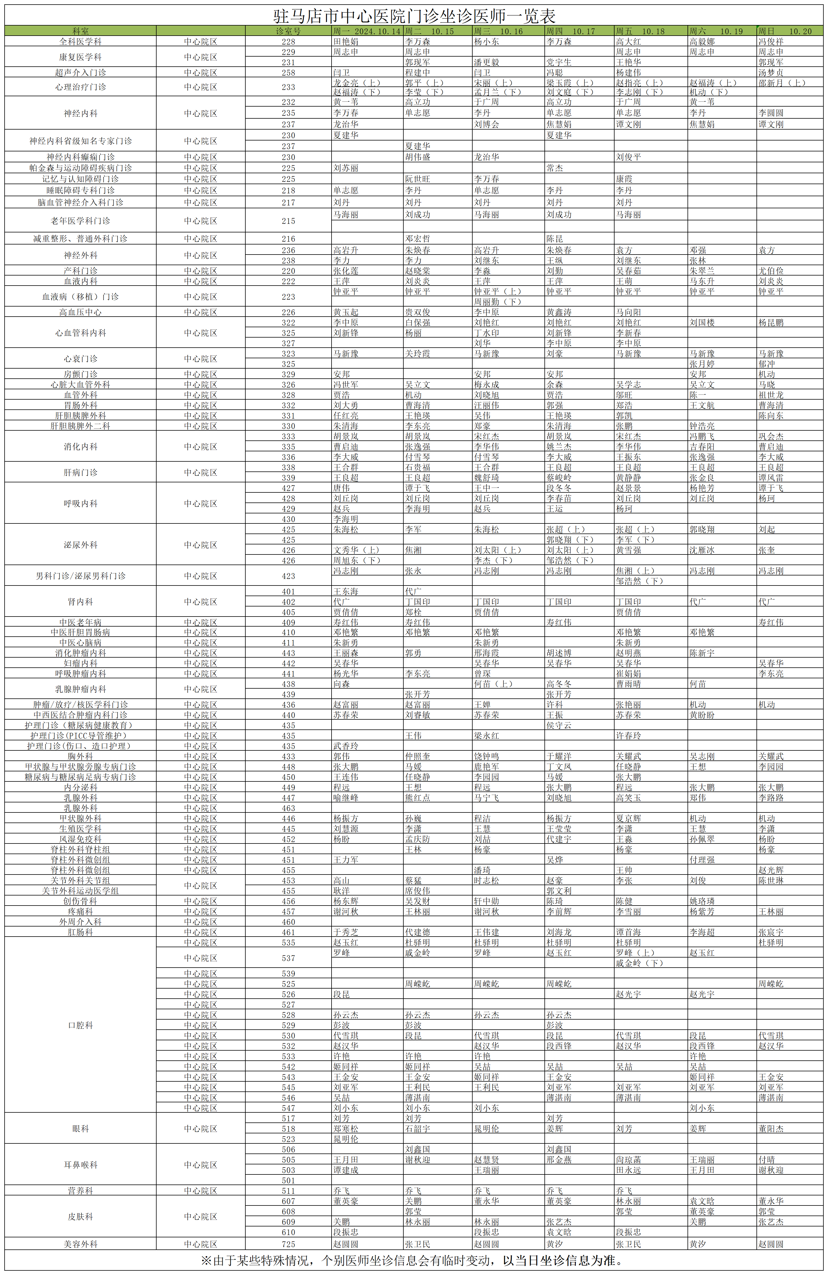 駐馬店市中心醫(yī)院門診坐診信息一覽表(含婦兒院區(qū))