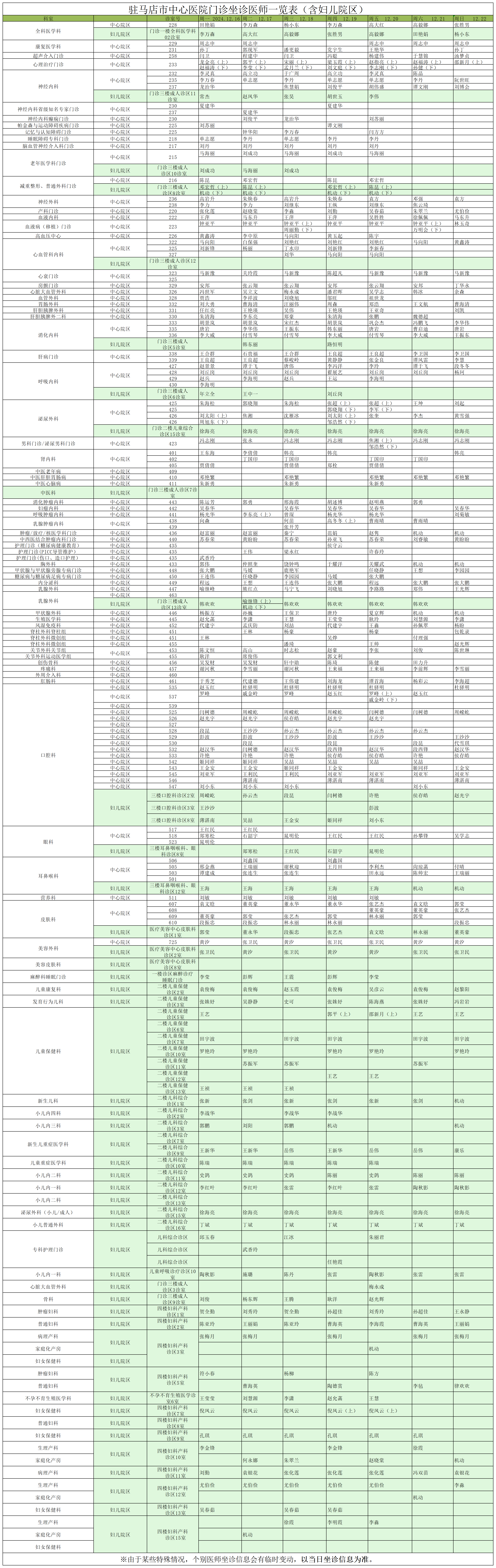 駐馬店市中心醫(yī)院門診坐診信息一覽表(含婦兒院區(qū))