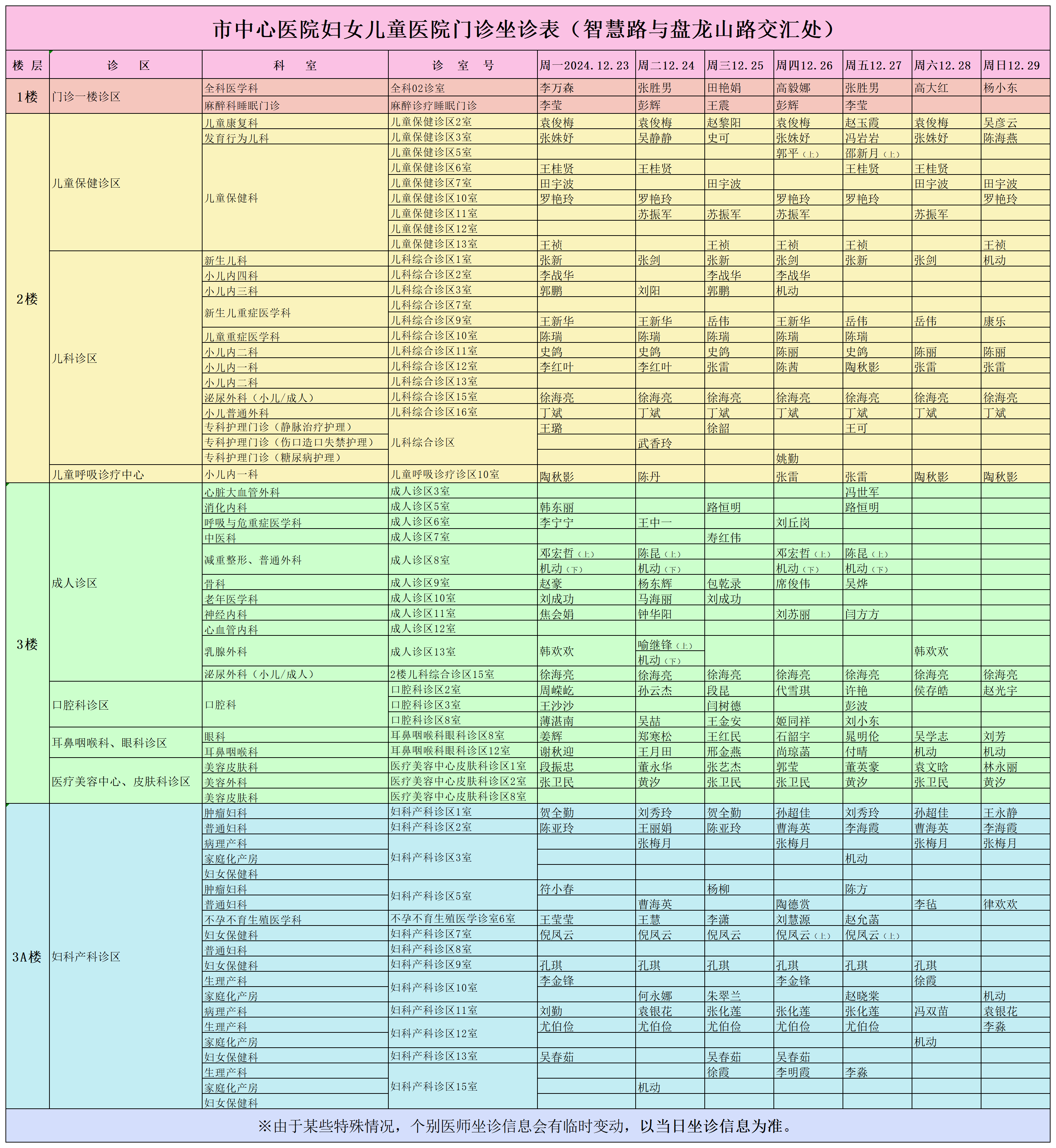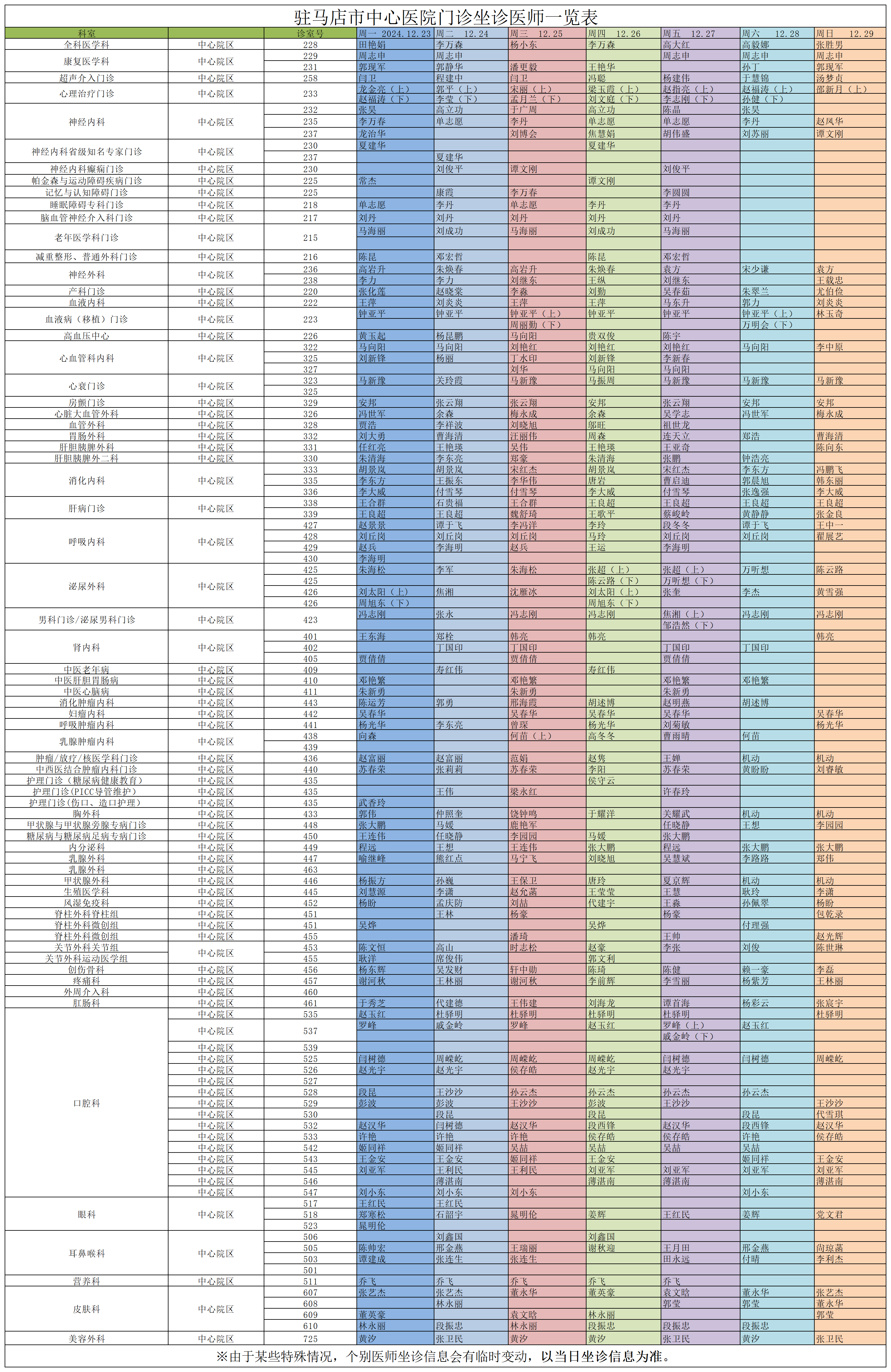 駐馬店市中心醫(yī)院門診坐診信息一覽表(含婦兒院區(qū))