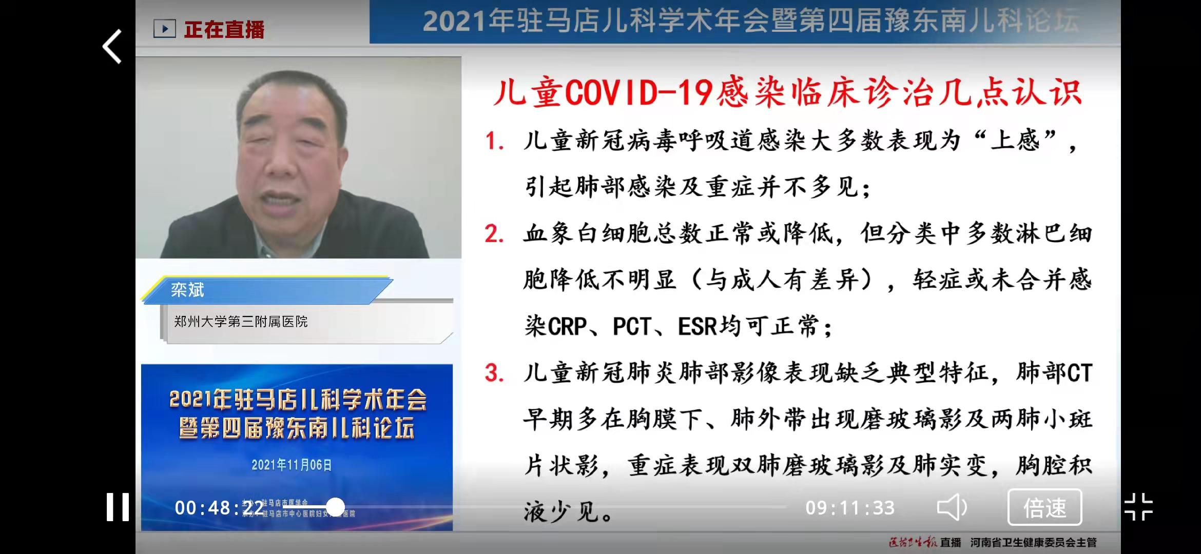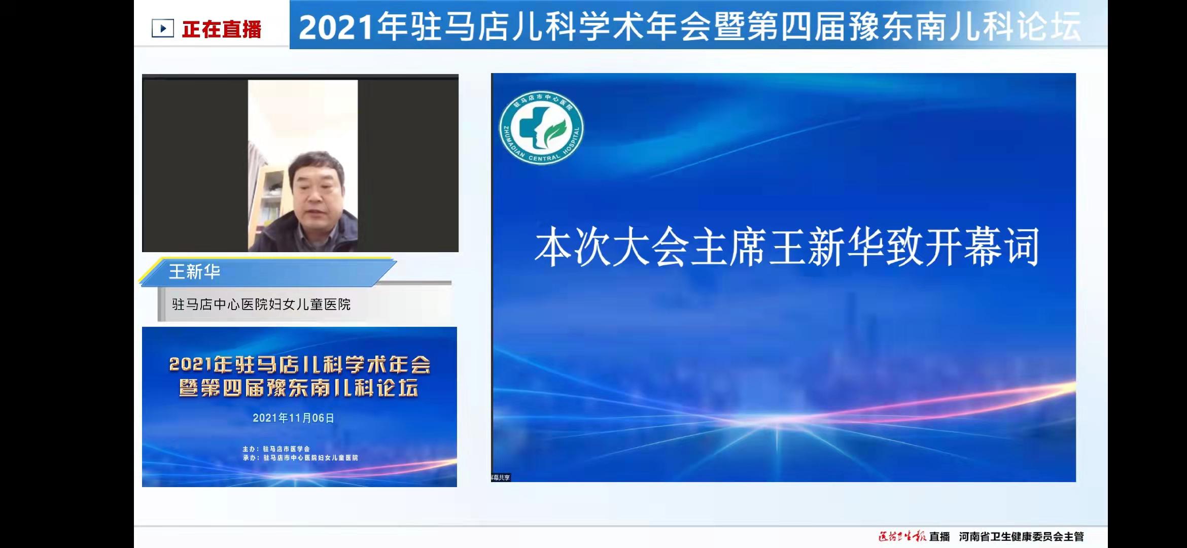 2021年駐馬店兒科學(xué)術(shù)年會(huì)暨第四屆豫東南兒科論壇在駐馬店市中心醫(yī)院順利召開為促進(jìn)我市兒科領(lǐng)域?qū)W科發(fā)展,提升我市兒科診療水平、加強(qiáng)學(xué)術(shù)交流。11月5日-6日,由駐馬店市醫(yī)學(xué)會(huì)主辦、駐馬店市中心醫(yī)院承辦的“河南省繼續(xù)醫(yī)學(xué)教育項(xiàng)目—第四屆豫東南兒科論壇” 在我市召開。鄭州大學(xué)第一附屬醫(yī)院程秀永教授、安金斗教授、王懷立教授,鄭州大學(xué)第三附屬醫(yī)院欒斌、徐發(fā)林、王西閣教授,河南省人民醫(yī)院程艷波教授,新鄉(xiāng)醫(yī)學(xué)院李樹軍教授、駐馬店市兒科學(xué)會(huì)主任委員王新華等出席開幕式;應(yīng)疫情防控要求,本次會(huì)議全部在線上舉行,但絲毫沒有影響各位專家的發(fā)揮和各位學(xué)員的聽課熱情,來自漯河市、信陽市、駐馬店市兒科醫(yī)護(hù)人員共1萬余人參加線上會(huì)議。