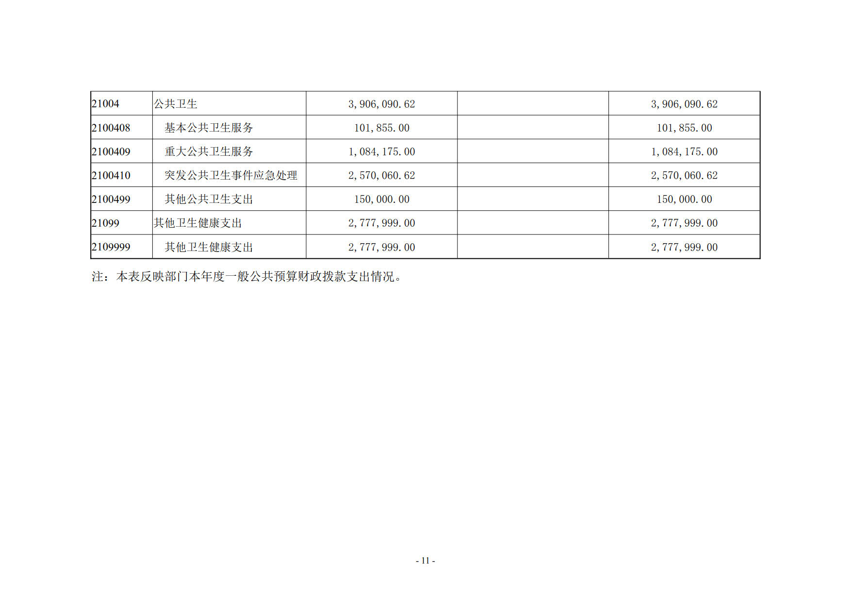 9.衛(wèi)生健康支出(類)其他衛(wèi)生健康支出(款)其他衛(wèi)生健康支出(項(xiàng))。年初預(yù)算為0萬元,支出決算為277.8萬元。決算數(shù)與年初預(yù)算數(shù)存在差異的主要原因是本年支出中使用的是上年度結(jié)轉(zhuǎn)的衛(wèi)生健康人才培養(yǎng)資金和消防支隊(duì)醫(yī)療款。