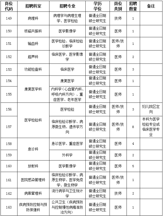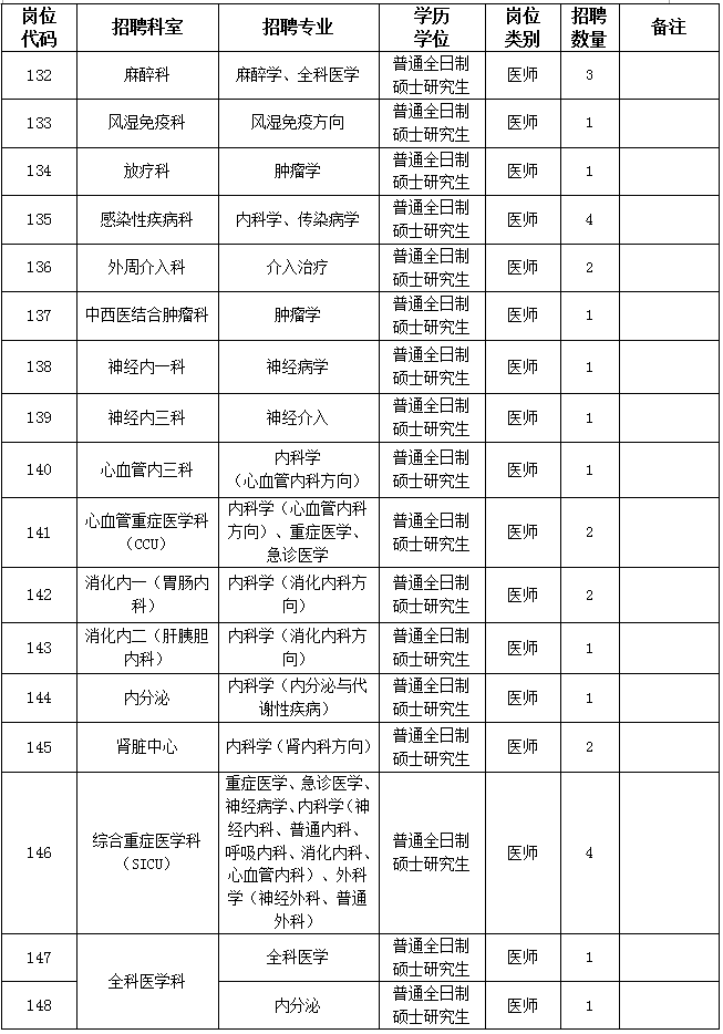 7.普通全日制碩士研究生要求年齡30周歲以下(1992年1月1日后出生),第一學歷為普通全日制本科(不含專升本、護理部崗位除外)、稀缺專業(yè)并持有規(guī)培證者年齡可適當放寬至 35周歲以下(1987年1月1日后出生);