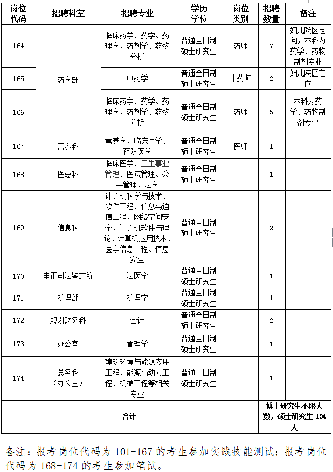 2.非衛(wèi)生系列專業(yè)技術崗位人員(報考崗位代碼為168-174和216-223的考生):進行筆試,具體詳見附件1崗位一覽表備注。