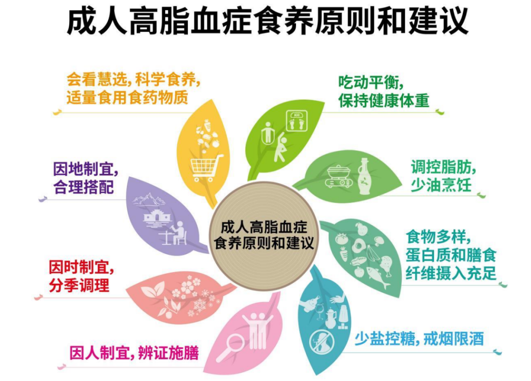 高脂血癥人群的日常食養(yǎng)8條原則和建議如下圖: