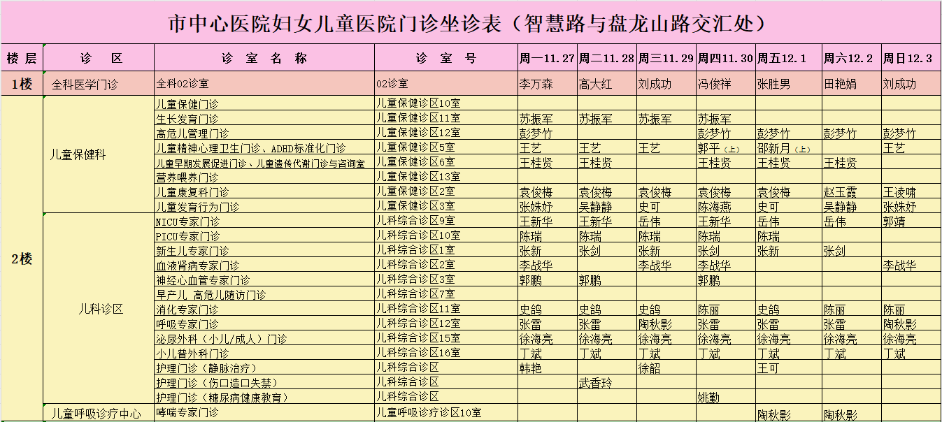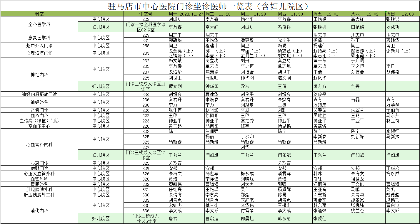 駐馬店市中心醫(yī)院門診坐診信息一覽表(含婦兒院區(qū))