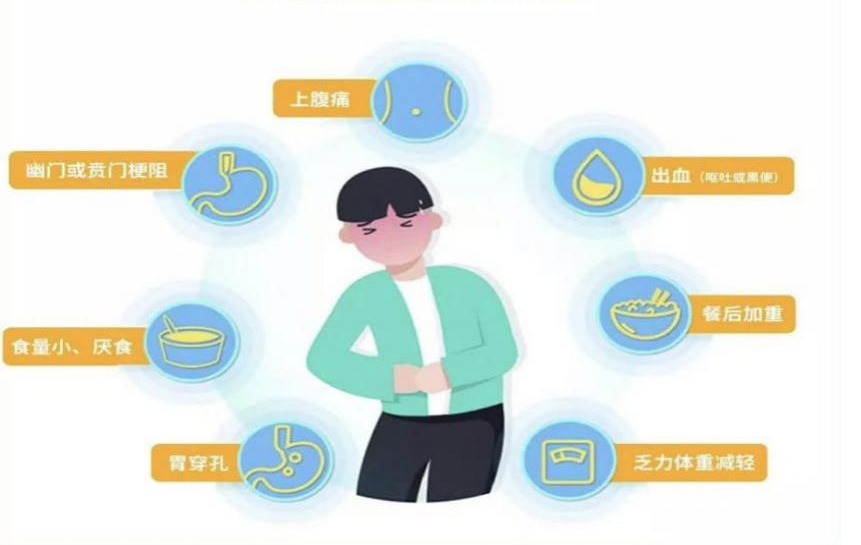 早期胃癌患者常無特異的癥狀,隨著病情的進(jìn)展可出現(xiàn) 類似胃炎、潰瘍病的癥狀,主要有: ①上腹飽脹不適或隱痛,以飯后為重;②食欲減退、噯氣、反酸、惡心、嘔吐、 黑便等。