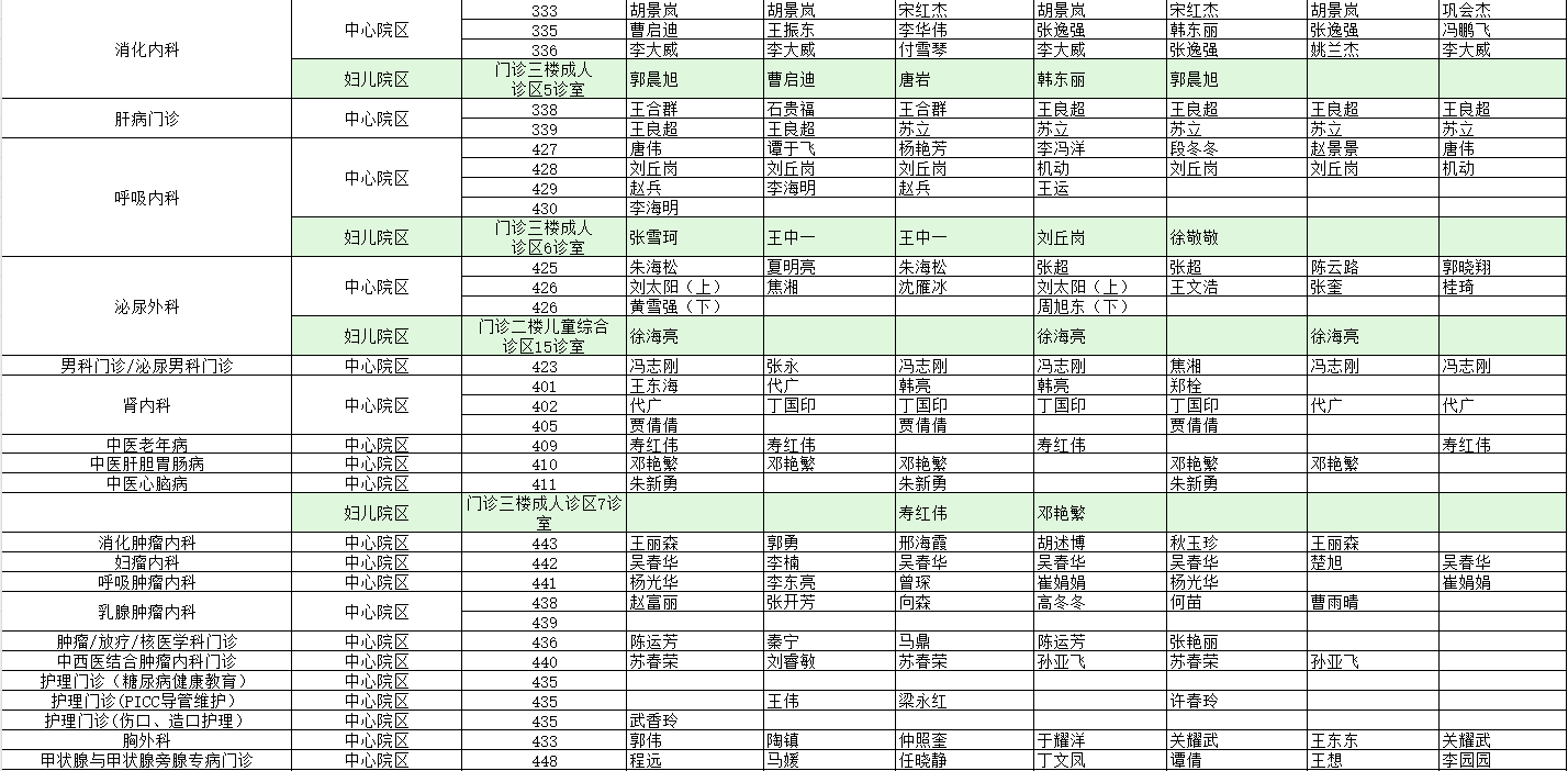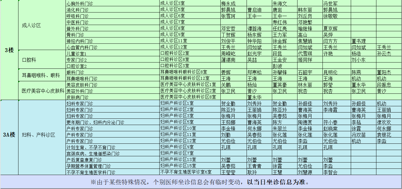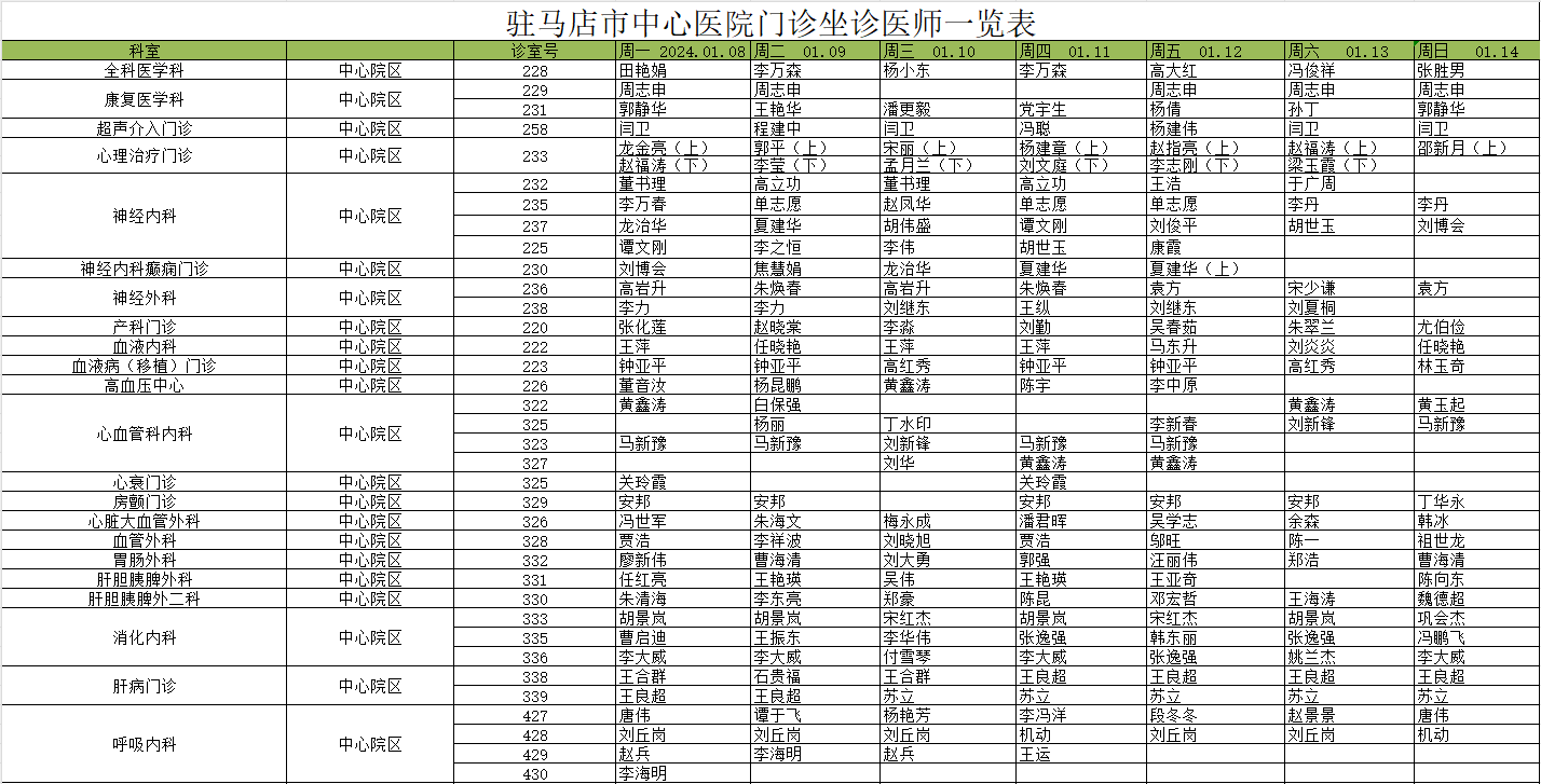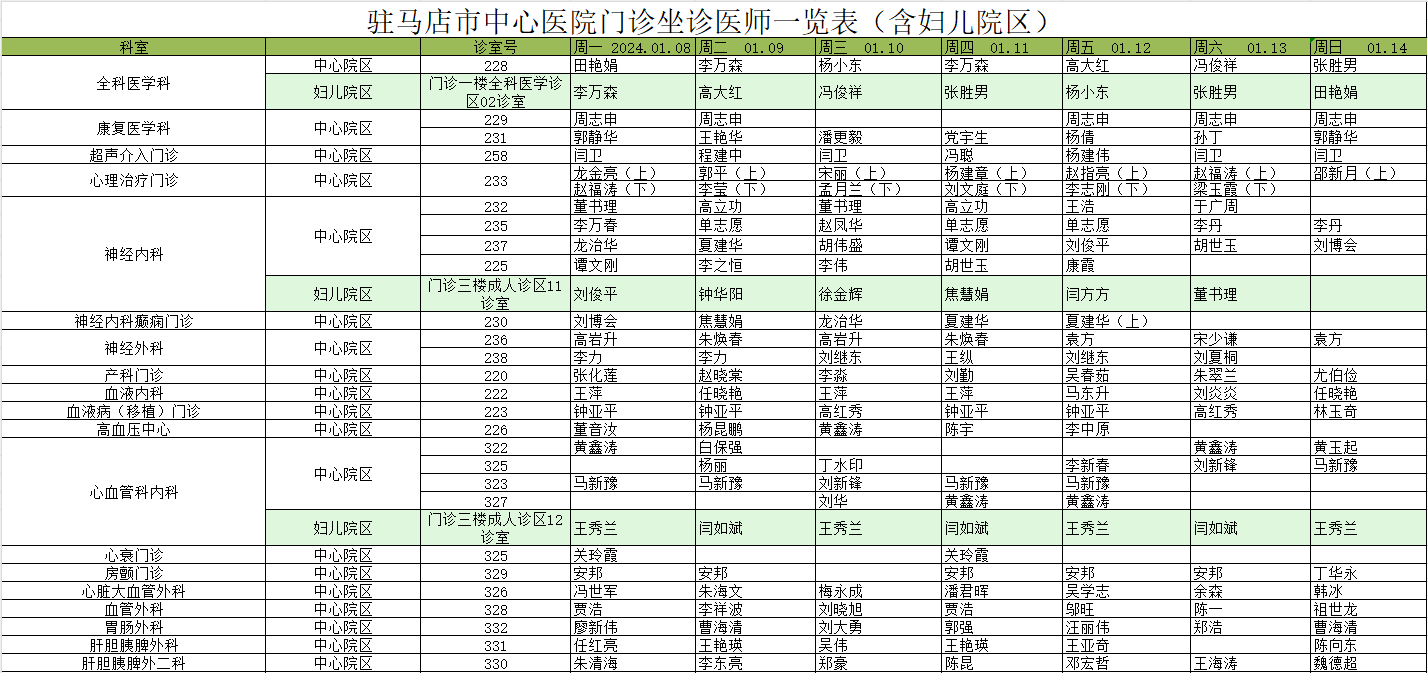 駐馬店市中心醫(yī)院門診坐診信息一覽表(含婦兒院區(qū))