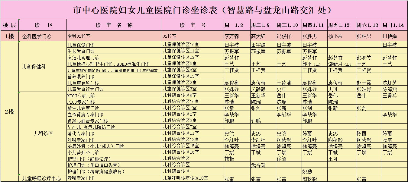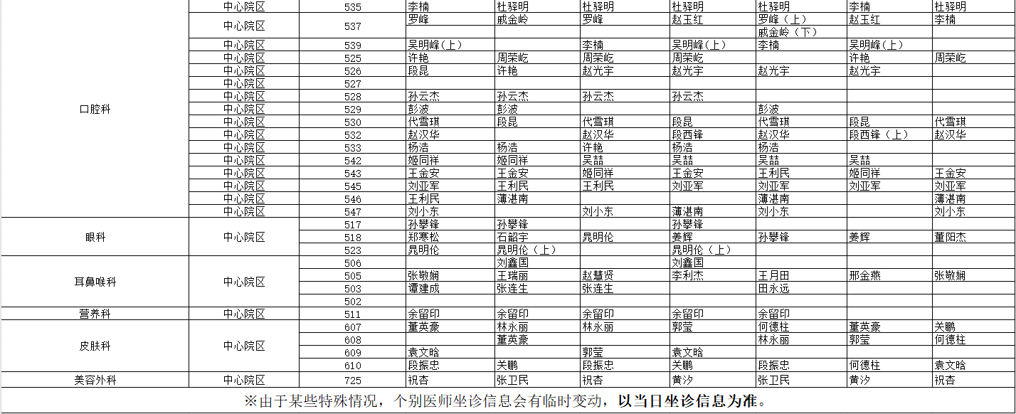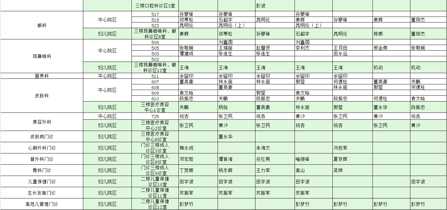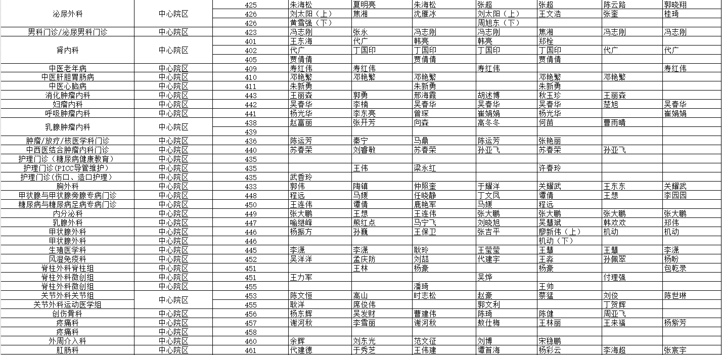 駐馬店市中心醫(yī)院門診坐診信息一覽表(含婦兒院區(qū))